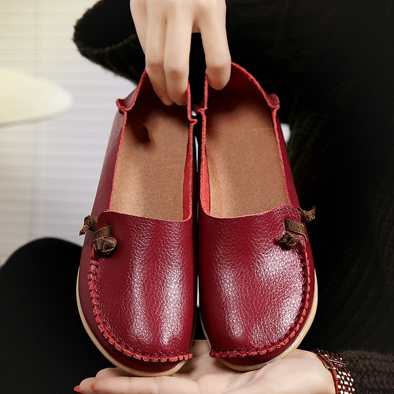 Women's Leather Shoes Flat Bottom Ladies Casual Mom Shoes Soft Loafers Women's Shallow Summer Comfort Flats Nursing Shoes Female