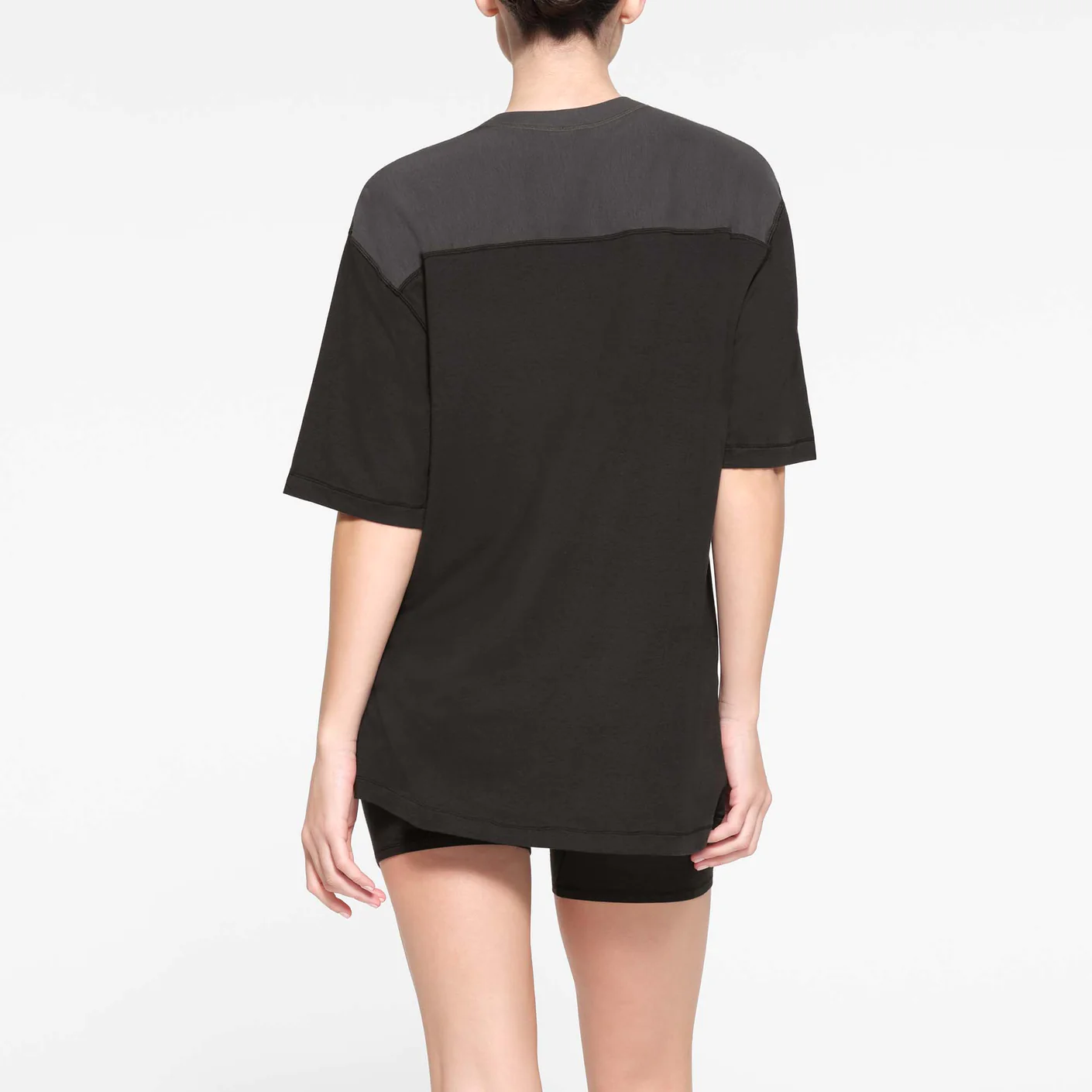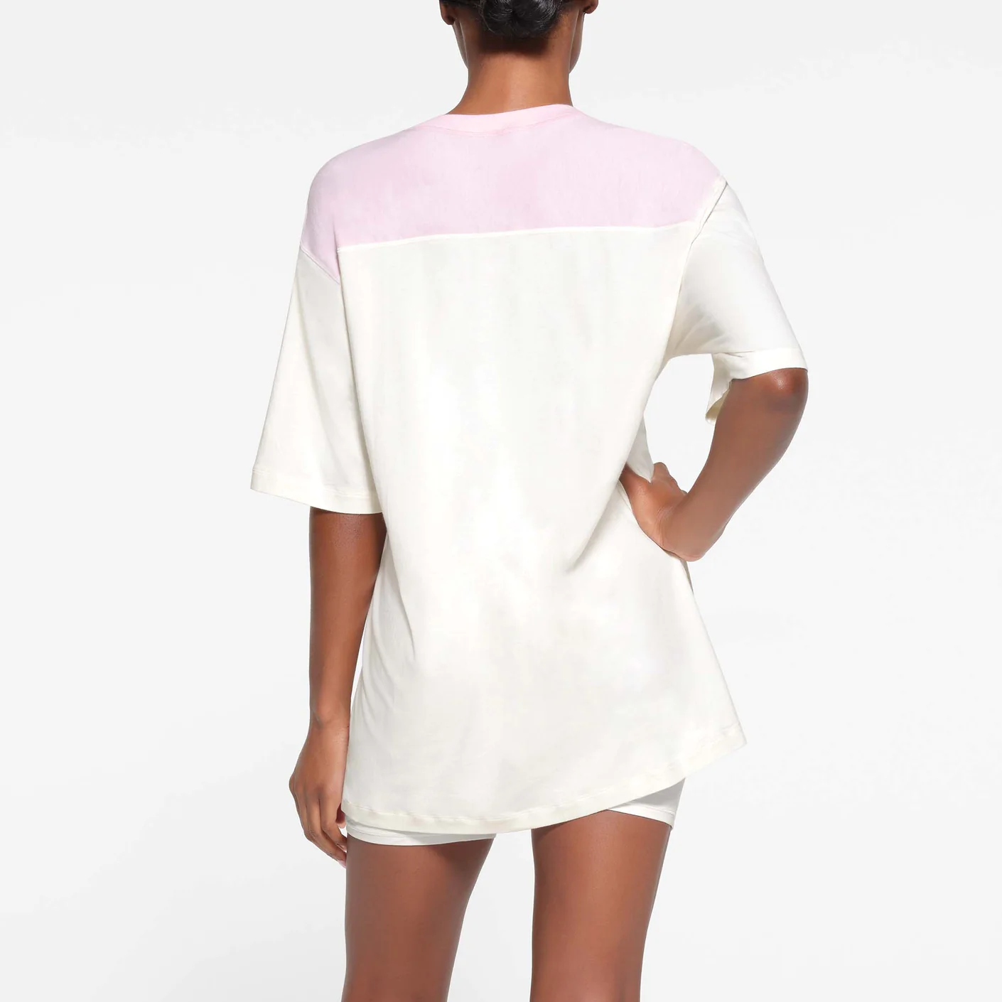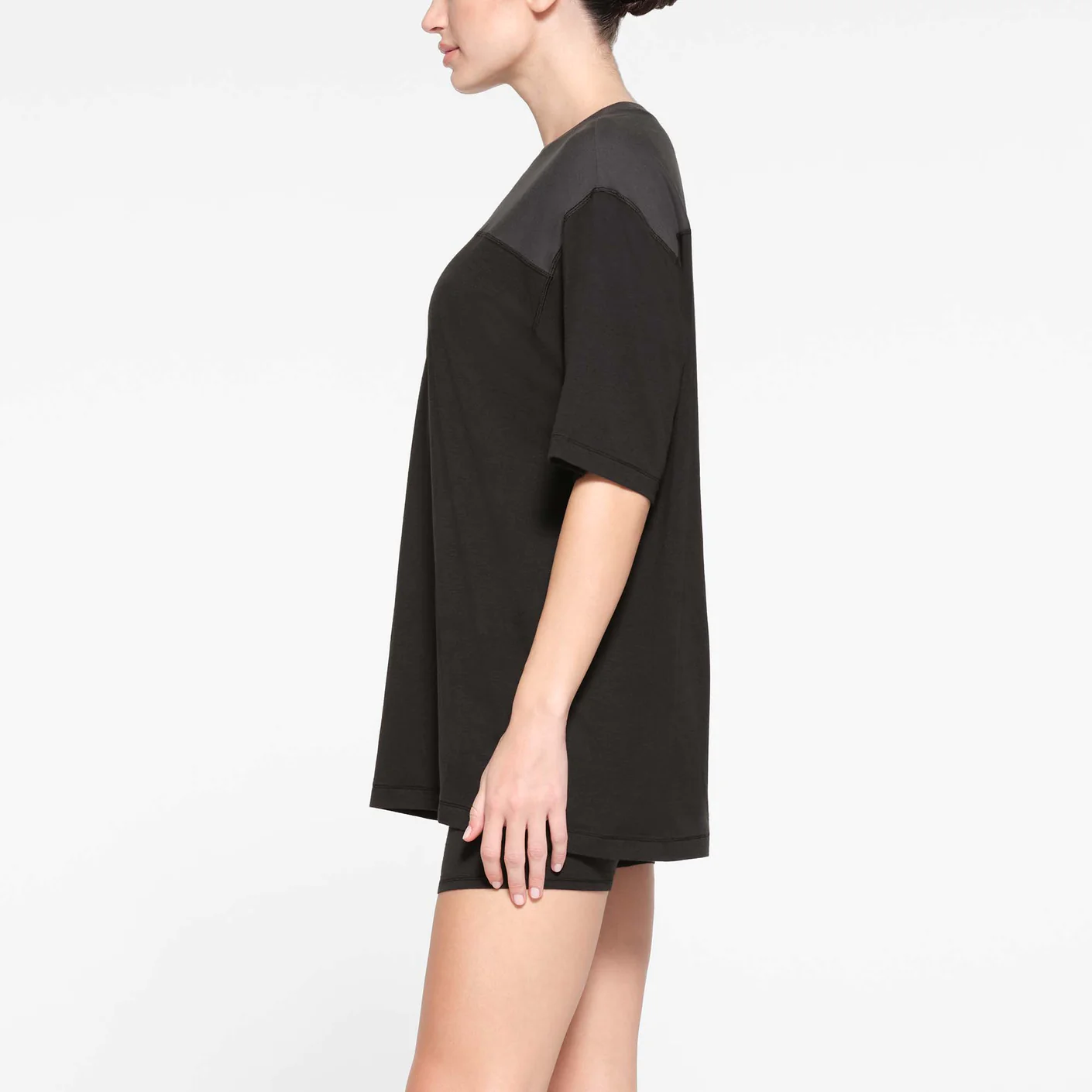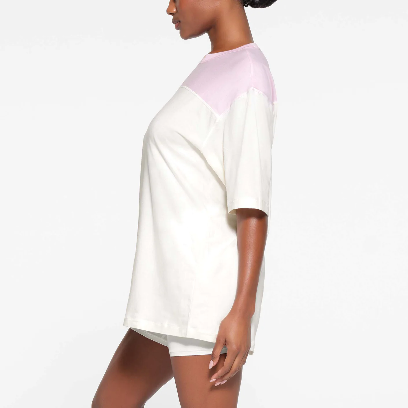 Your favorite unisex tee has a fresh new look. An updated version of our best-selling Boyfriend t-shirt, this sporty style has raglan seams and contrast colors at the neck and shoulders. Made with lightweight, drapey jersey for unmatched comfort while you lounge and sleep. For women: choose your regular size for a baggy, oversized look. For men: fits true to size.