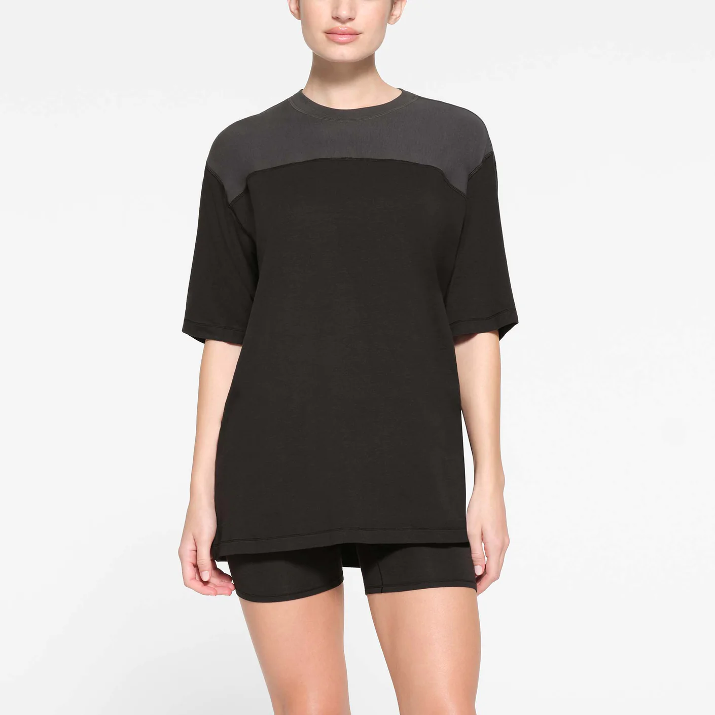 - update to our classic boyfriend t-shirt, raglan seams, contrast neckband and yoke