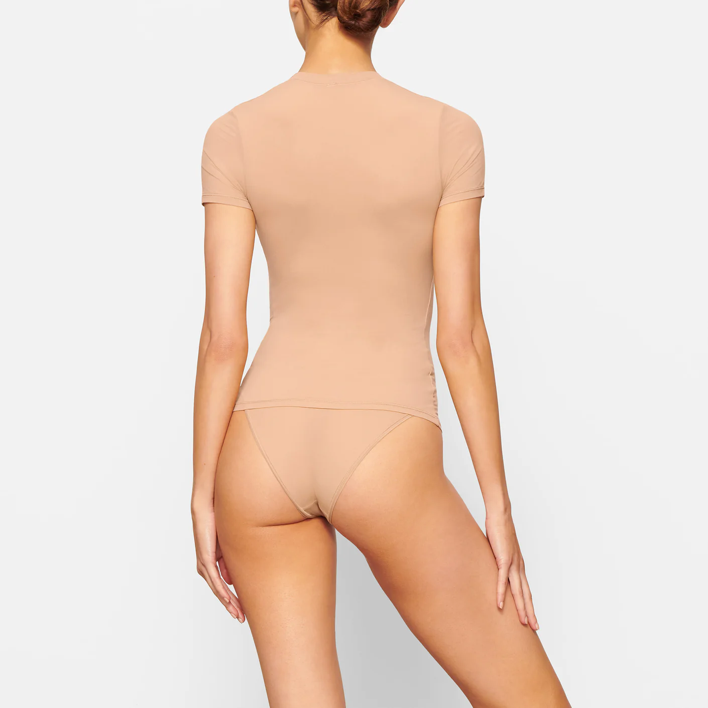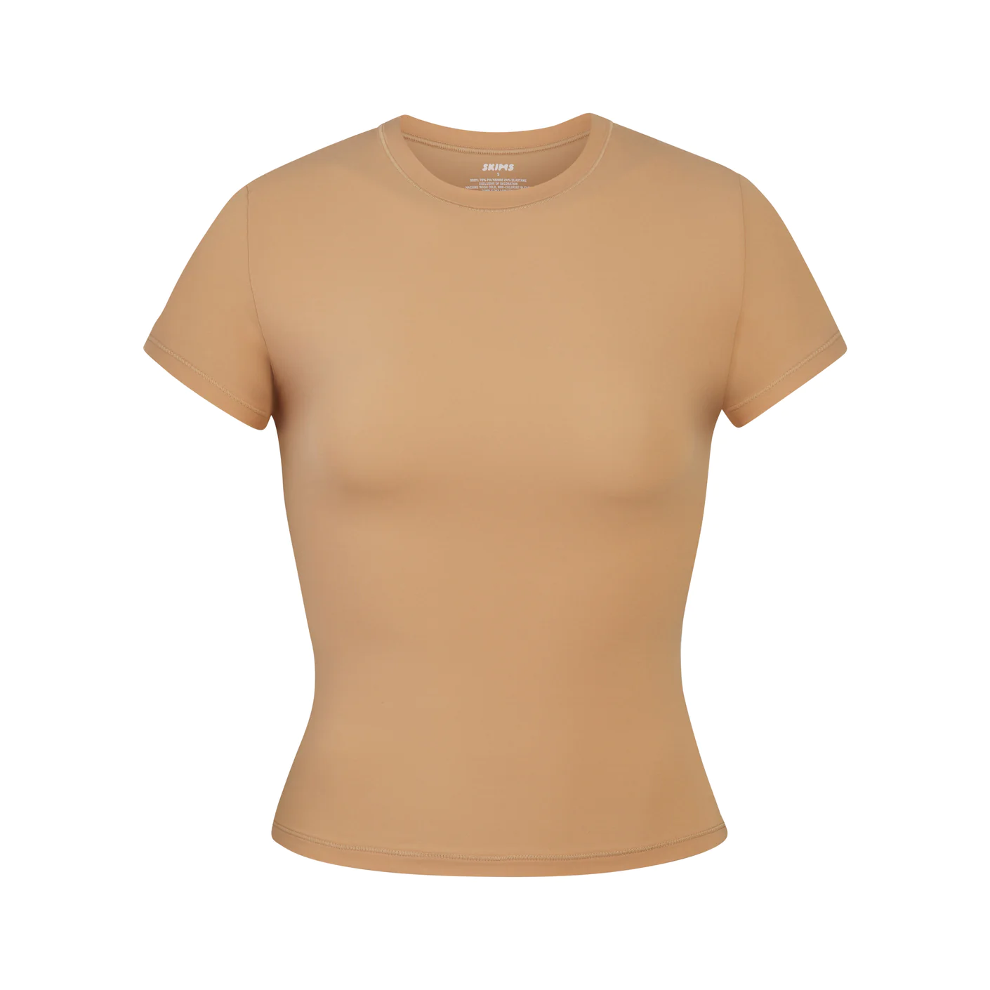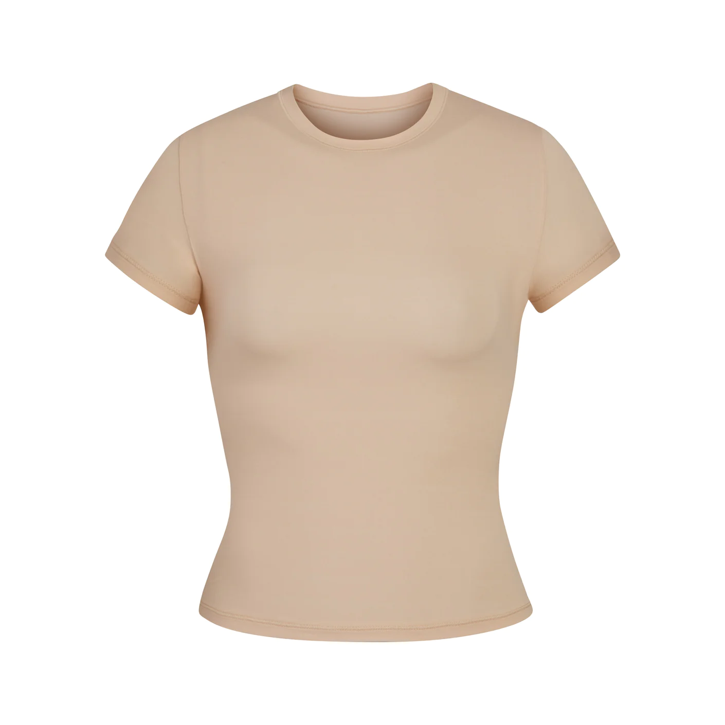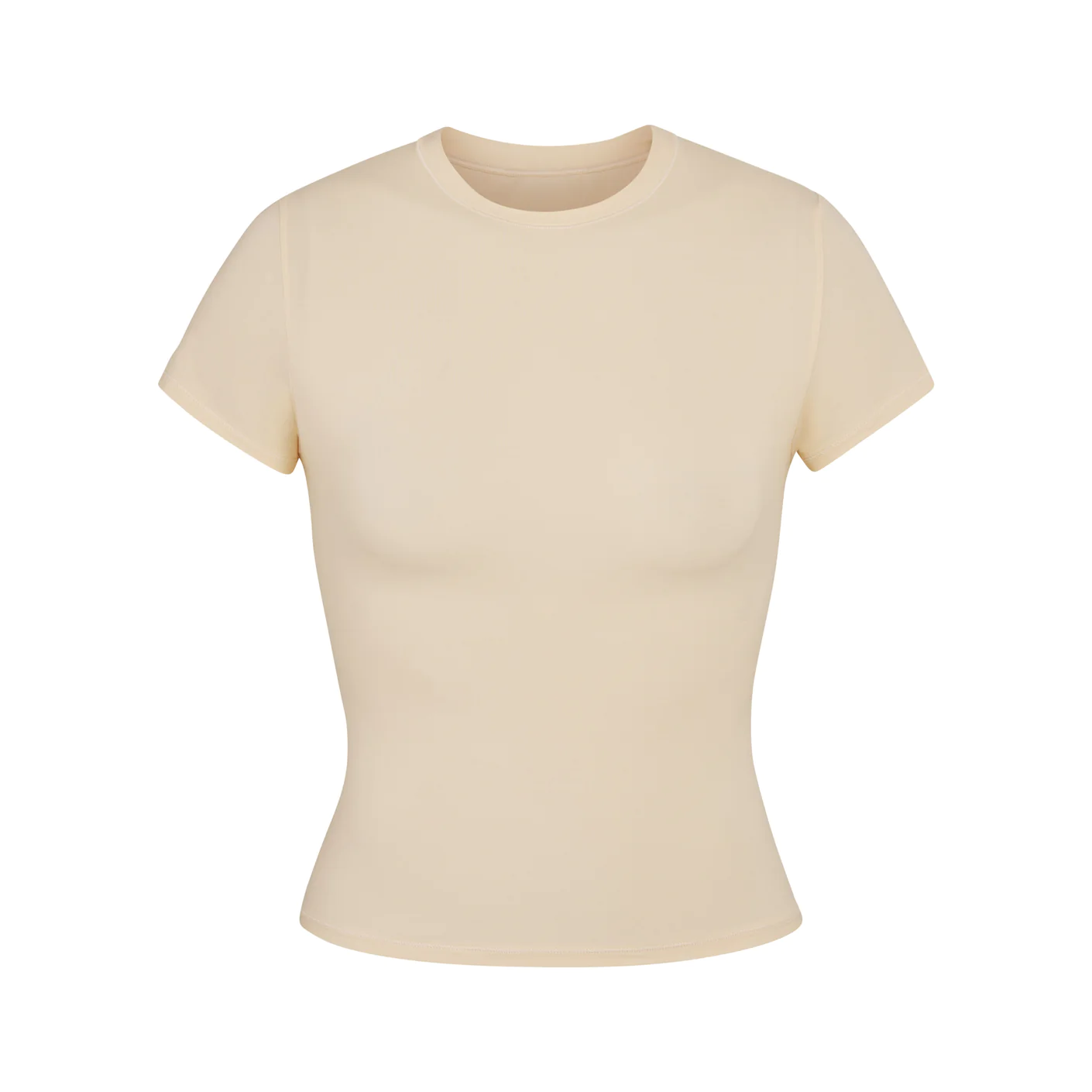 The essential everyday fitted t-shirt: with a crew neck fit and buttery soft feel, this body-hugging tee is perfect to wear alone or layered under other pieces.